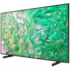 تلویزیون سامسونگ DU8000 سایز 85 اینچ از جمله تلویزیون های 2024 و سری 8 سامسونگ محسوب می شود. این تلویزیون با مدل کامل UA85DU8000UXTW مونتاژ مصر و همینطور با مدل کامل UA85DU8000UXZN مونتاژ مصر وارد بازار ایران شده و موجود شده است. این تلویزیون جزو ارزان ترین تلویزیون های کریستال 4K سامسونگ و همینطور یکی از ارزان ترین تلویزیون های گیمینگ با ابعاد بزرگ در سال 2024 است. تلویزیون کریستال سامسونگ 85DU8000 به تکنولوژی کریستال مجهز است و به همین دلیل به تلویزیون کریستالی شناخته می شود. در واقع این تلویزیون دارای صفحه نمایش ال ای دی است اما چون تکنولوژی Crystal دارد به آن تلویزیون کریستالی گفته می شود. این تلویزیون دارای نور پس زمینه Edge LED است. در این نوع نور پس زمینه چراغ های ال ای دی در اطراف صفحه نمایش تعبیه شده اند. این نوع نور پس زمینه عموما در تلویزیون های ارزان قیمت و پایین رده مورد استفاده قرار می گیرد تا هزینه ساخت کاهش یابد و قیمت نهایی تلویزیون نیز کم شود. سامسونگ این تلویزیون را برخلاف مدل سال گذشته آن به پنل IPS مجهز کرده است. پنل IPS عمق رنگ مشکی و کنتراست تصویر به نسبت ضعیف تری ارائه می دهد اما از نظر زاویه دید کمی بهتر از تلویزیون های پایین رده ای است که پنل VA دارند. با توجه به الگوریتم جدیدی که سامسونگ امسال برای کنترل نور پس زمینه در این تلویزیون بکار برده، کنترل نور پس زمینه دقیق تر و بهتر انجام می شود. این موضوع باعث می شود تا صحنه های تاریک بهتر نمایش داده شوند و شاهد کنتراست تصویر بهتر، یکنواختی مشکی صفحه نمایش بهتر و همینطور بلومینگ تصویر به نسبت کمتر باشیم. به طور کلی این تلویزیون به نسبت مدل سال گذشته خود برای تماشا در محیط تاریک گزینه بهتری است. متاسفانه این تلویزیون تکنولوژی Local Dimming ندارد و نمی تواند نور پس زمینه قسمت های مختلف صفحه نمایش را به صورت مجزا کنترل و تنظیم کند. البته این موضوع در تلویزیون های پایین رده ای مانند این تلویزیون کاملا طبیعی است و ما نیز انتظار زیادی از آن نداریم. سامسونگ برای جبران این موضوع از تکنولوژی UHD Dimming در این تلویزیون استفاده نموده تا به صورت نرم افزاری کنتراست تصویر بهتری در اختیار شما قرار دهد. این محصول دارای سنسور نور و قابلیت Brightness Detection است و در صورتی که آن را فعال کنید، نور صفحه نمایش با توجه به شرایط نوری محیط به صورت اتوماتیک تنظیم می شود تا همیشه بهترین کیفیت تصویر را تجربه کنید. صفحه نمایش این تلویزیون از عمق رنگ 10 بیت (8 بیت + FRC) برخوردار است و به کمک تکنولوژی One Billion Color توانایی نمایش حدود 1 میلیارد رنگ مختلف را دارد. همینطور دارای تکنولوژی Dynamic Crystal Color است و رنگ های جذابی نسبت به تلویزیون های ال ای دی معمولی تولید می کند. متاسفانه خبر بد این است که این تلویزیون نسبت به مدل سال گذشته خود از نظر رنگ کمی پسرفت داشته است و رنگ ها در این تلویزیون کمی بی روح تر و به اصطلاح کال تر هستند. این موضوع زمانی که این دو تلویزیون را در کنار هم مقایسه کرده و محتوای یکسانی را روی آنها پخش کنید، ملموس است. سامسونگ امسال یک قابلیت جدید با عنوان قابلیت Color Booster در این تلویزیون تعبیه نموده است و به شما اجازه می دهد تا غلظت رنگ را به دلخواه خود تنظیم کنید. صفحه نمایش این تلویزیون برخلاف سایزهای کوچک تر خود از رفرش ریت 120 هرتز برخوردار است و توانایی نمایش محتوای 4K با فریم در ثانیه را دارد. این محصول به کمک تکنولوژی Motion Rate 240 صحنه های سریع را واضح و صاف نمایش می دهد و تا حد زیادی از تاری آنها جلوگیری می کند. زمان پاسخگویی تصویر این تلویزیون نسبت به مدل سال گذشته آن مقدار زیادی کاهش یافته است و این موضوع در کنار پردازش بهتر صحنه های سریع باعث شده تا صحنه های سریع دقیق تر و بهتر نمایش داده شوند؛ به همین دلیل این محصول می تواند گزینه خوبی برای گیمرها و همینطور علاقمندان به سینما باشد. این تلویزیون تکنولوژی Picture Clarity نیز دارد و به شما اجازه می دهد تا با توجه به محتوای در حال پخش و به دلخواه خود تنظیمات ن