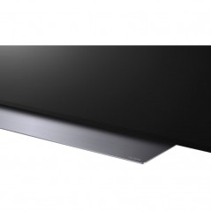 تلویزیون 83 اینچ ال جی C3 از لحاظ ظاهری تقریبا مشابه مدل سال گذشته می باشد و همانند آن از زبان طراحی 4 Sided Cinema Screen برخوردار است. به لطف این زبان طراحی، شاهد قاب و حاشیه های باریک در چهار طرف این تلویزیون (باریکی قاب صفحه نمایش این تلویزیون، به اندازه سایزهای 55، 65 و 77 اینچ نیست) هستیم که به بیننده اجازه می دهد تا با تمرکز بیشتر بر روی محتوای مورد علاقه خود، از تماشای آن لذت ببرد. این تلویزیون دارای ضخامت 5.53 سانتیمتر می باشد و می توان آن را بر روی دیوار نیز نصب کرد. البته در نظر داشته باشید که ضخامت گفته شده مربوط به قسمت پایین تلویزیون (محل قرارگیری پورت های ورودی و خروجی و مادربورد) می باشد و در قسمت بالای آن، ضخامت بسیار باریکی را شاهد خواهیم بود. پایه محصول پیش روی شما به صورت خطی طراحی شده و به کمک پیچ در قسمت میانی تلویزیون نصب می شود. این پایه از جنس پلاستیک و فلز می باشد و ظاهر شیک و مقاومت خوبی دارد. ال جی یک کاور پلاستیکی برای پشت پایه این تلویزیون در نظر گرفته است که می توانید به کمک آن تا حدودی کابل ها را پشت تلویزیون مخفی و مرتب کنید. علاوه بر آن یک عدد گیره و بست کمربندی نیز داخل جعبه تلویزیون وجود دارد که می توانید از آنها نیز برای مدیریت کابل ها پشت تلویزیون استفاده کنید. با توجه به اینکه طول این پایه بخش بزرگی از طول تلویزیون را پوشش می دهد، برای نصب آن به میز بزرگی نیاز خواهید داشت. در جعبه این تلویزیون یک عدد کابل IR Blaster نیز وجود دارد.
