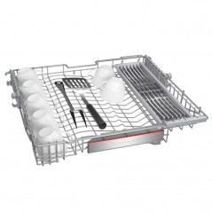 این ماشین ظرفشویی از طراحی متفکرانه و ویژگی های نوآورانه ای بهره می برد تا بتواند ظروف کثیف روزمره ی شما را با نهایت پاکیزگی در اختیارتان قرار دهد. همچنین ساختاری کاملا باکیفیت داشته و از متریال استیل ضد زنگ در آن استفاده شده است تا بتواند بالاترین سطح دوام و کیفیت را برایتان به ارمغان آورد. این ماشین ظرفشویی دارای ابعاد استاندارد 600x845x600 میلی متر می باشد و امکان قرار دادن راحت و آسان آن در داخل کابینت وجود دارد. چیزی که این محصول را از دیگر ماشین ظرفشویی ها متمایز کرده است مجهز شدن آن به کنترل پنل مخفی می باشد که در واقع این بخش به قسمت داخلی و بر روی درب دستگاه انتقال یافته است. یعنی اینکه فقط با باز کردن درب ظرفشویی می توانید به برنامه های شستشو و تابع ها و گزینه های اضافی دسترسی داشته باشید. درب این ماشین ظرفشویی را می توانید از بالا رو به پایین باز کنید. با باز کردن درب می توانید شاهد طبقات و سبد های بسیار باکیفیت دستگاه باشید. در واقع این ماشین ظرفشویی جزو ظرفشویی های سه طبقه ی موجود در بازار است یعنی اینکه از سه سبد بزرگ و جادار برای قرار دادن انواع ظروف تشکیل شده است. سبد اول این ماشین ظرفشویی که به Vario Basket یا Cutlery Basket نیز معروف می باشد، مخصوص قرار دادن کارد، قاشق و چنگال و ظروف کوچکتر مانند ملاقه یا لیسک می باشد. از سبد دوم می توانید برای قرار دادن ظروف با اندازه های متوسط و نه چندان بزرگ مانند کاسه و پیش دستی و لیوان استفاده کنید. سبد آخر و پایینی دستگاه هم به گونه ای است که شما می توانید ظروف بزرگ تری را در درون آن بچینید. به گفته ی کمپانی بوش شما حتی می توانید ظروفی با قطر 60 سانتی متر را نیز در درون طبقه ی پایین این محصول قرار دهید.