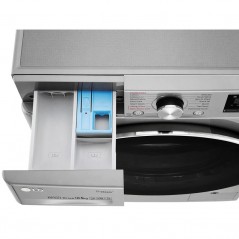 ماشین لباسشویی ال جی F4V5RYP2T رنگ نقره ای جزو ماشین لباسشویی های 2020 ال جی به شمار می آید. این ماشین لباسشویی ممکن است در بازار با مدل ماشین لباسشویی ال جی V5 یا 4V5 نیز معرفی شود اما مدل درست و کامل آن ماشین لباسشویی F4V5RYP2T مونتاژ کشور چین می باشد که در حال حاضر در بازار ایران موجود است. این مدل دارای ظرفیت 10.5 کیلوگرم بوده و برای خانواده های پرجمعیت مناسب است، شما می توانید به راحتی لحاف های سنگین خود را نیز در آن انداخته و بشویید. ماشین لباسشویی 10.5 کیلویی ال جی F4V5RYP2T مجهز به موتور Inverter Direct Drive و بدون تسمه می باشد. متاسفانه برخی از فروشگاه ها به دلیل عدم آگاهی لباسشویی های دایرکت درایو را با نام لباسشویی گیربوکس دار به مشتری معرفی می کنند که کاملا اشتباه است. موتور های دایرکت درایور اینورتر در مقایسه با موتور های قدیمی و معمولی دارای لرزش کمتر و راندمان بیشتری می باشند و به ندرت معیوب می شوند. با توجه به عدم وجود تسمه، موتور Direct Drive مستقیما دیگ را چرخانده و با کاهش لرزش دستگاه طول عمر آن را افزایش می دهد؛ به طوری که الجی طول عمر مفید آن را تا 10 سال نیز تضمین نموده است که بیانگر کیفیت ساخت بالای آن می باشد. ماشین لباسشویی فوق دارای تکنولوژی AI DD (AI Direct Drive) می باشد که وزن و جنس پارچه را تشخیص داده و به طور هوشمند متناسب با آن الگوی حرکت شستشوی مناسب را اعمال می کند. همچنین با برخورداری از تکنولوژی 6 Motion DD و با چرخش دیگ شستشو در 6 جهت لباس ها را بهتر شستشو می دهد. ماشین لباسشویی 1400 دور ال جی F4V5RYP2T نمی تواند پس از شستشو لباس ها را کاملا خشک و قابل پوشیدن به شما تحویل دهد و به عبارتی دیگر قابلیت خشک کن ندارد؛ اما لباس ها را کاملا آب کشی کرده و با توجه به دور چرخش بالایی که دارد لباس ها را تا حد زیادی در دور پایانی شستشو، آبگیری می نماید و با رطوبت اندکی به شما تحویل می دهد. البته سرعت چرخش در شستشو های مختلف متفاوت از یکدیگر است ولی حداکثر سرعت چرخش دیگ در ماشین لباسشویی فوق برابر با 1400 دور در دقیقه می باشد. ماشین لباسشویی ال جی F4V5 مجهز به 14 برنامه شستشوی اصلی برای انواع البسه است که شما می توانید با استفاده از دکمه چرخشی روی محصول برنامه شستشوی مدنظر خود را تنظیم کنید. همچنین می توانید برنامه های جدیدی را به وسیله قابلیت Download Cycle جهت شستشو از طریق موبایل هوشمند خود دانلود کرده و به لباسشویی اضافه کنید. این محصول دارای قابلیت Steam می باشد و می تواند لباس ها را با استفاده از بخار و کاملا بهداشتی بشوید. برای استفاده از قابلیت بخارشوی در این ماشین لباسشویی باید برنامه Allergy Care یا برنامه Baby Steam Care را انتخاب کنید. برنامه شستشوی Allergy Care می تواند با استفاده از بخار، باکتری و ذرات آلرژی زا را تا 99.9% از بین می برد و این قابلیت برای لباس های کودکان بسیار کاربردی می باشد. در صورتی که می خواهید از ماشین لباسشویی خود در شب استفاده کنید برنامه شستشو را روی Silent Wash تنظیم کنید تا با لرزش و صدای کمتری شستشوی آن ها انجام شود. حالت شستشوی Quick 30 برای شستشوی حجم کم لباس های روزمره بسیار مناسب است. علاوه بر برنامه های شستشوی لباس، برنامه Tub Clean در محصول فوق مخصوص شستشوی داخل دیگ لباسشویی می باشد. از برنامه های کاربردی این محصول برنامه شستشوی Hand/Wool است که شستشوی دستی نیز معروف است، اگر لکه های لباس شما سطحی می باشد می توانید از این برنامه جهت لکه زدایی آن ها استفاده نمایید. به کمک قابلیت های Spin و Temp می توانید به ترتیب سرعت چرخش دیگ و دمای آب را به صورت دستی تنظیم کنید. با قابلیت Delay End در این ماشین لباسشویی شروع برنامه شستشو با تاخیر انجام می شود و شما به کمک آن زمان پایان شستشو را نیز تعیین می کنید. یکی از قابلیت های کاربردی این محصول قابلیت Add Item می باشد و شما می توانید به هنگام شستشو، برنامه شستشو را متوقف کرده و لباس های جا مانده خود را به ماشین لباسشویی اضافه نمایید. ماشین لباسشویی هوشمند ال جی F4V5RYP2T دارای وای فای می باشد و از اینترنت اشیاء یا IoT و ب